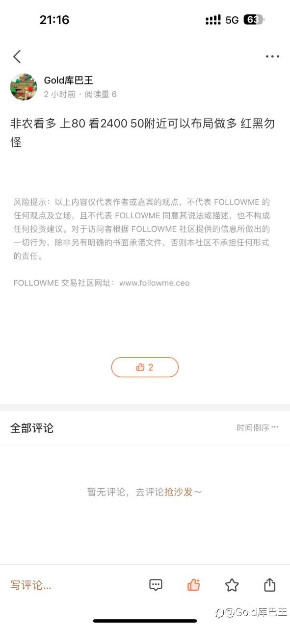 今日战报!今天这行情听了无数客户和我抱怨爆仓 的确是挺难的一天 做空拦半山腰 做多高位站岗!幸运的是今天还是全身而退了!活动还在继续 点赞7.16日的动态我会随机抽取5名幸运儿免费订阅一个月 截至本周日! 风险提示:本文所述仅代表作者个人观点,不代表 Followme 的官方立场。Followme 不对内容的准确性、完整性或可靠性作出任何保证,对于基于该内容所采取的任何行为,不承担任何责任,除非另有书面明确说明。