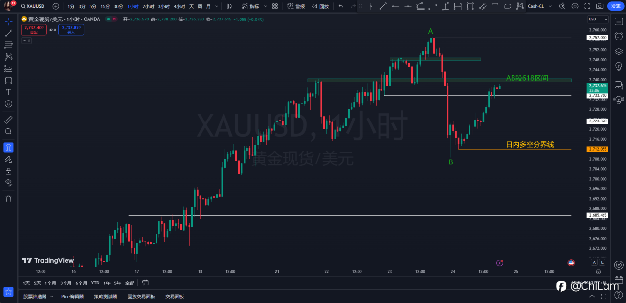 若价格破位下行,整体偏向空头为主,支持区间看2350和2333区间。(2333区间是ab=cd的PR结构区间也是前期重要的密集成交区)