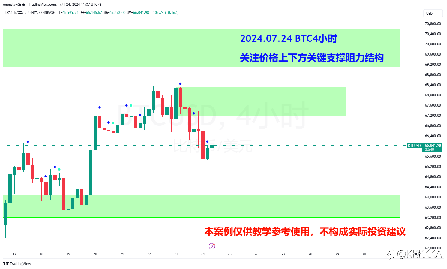 2024.07.27 BTC4小时 价格到位下方关键支撑位后开始走多 已编辑 27 Jul 2024, 12:04 风险提示:本文所述仅代表作者个人观点,不代表 Followme 的官方立场。Followme 不对内容的准确性、完整性或可靠性作出任何保证,对于基于该内容所采取的任何行为,不承担任何责任,除非另有书面明确说明。