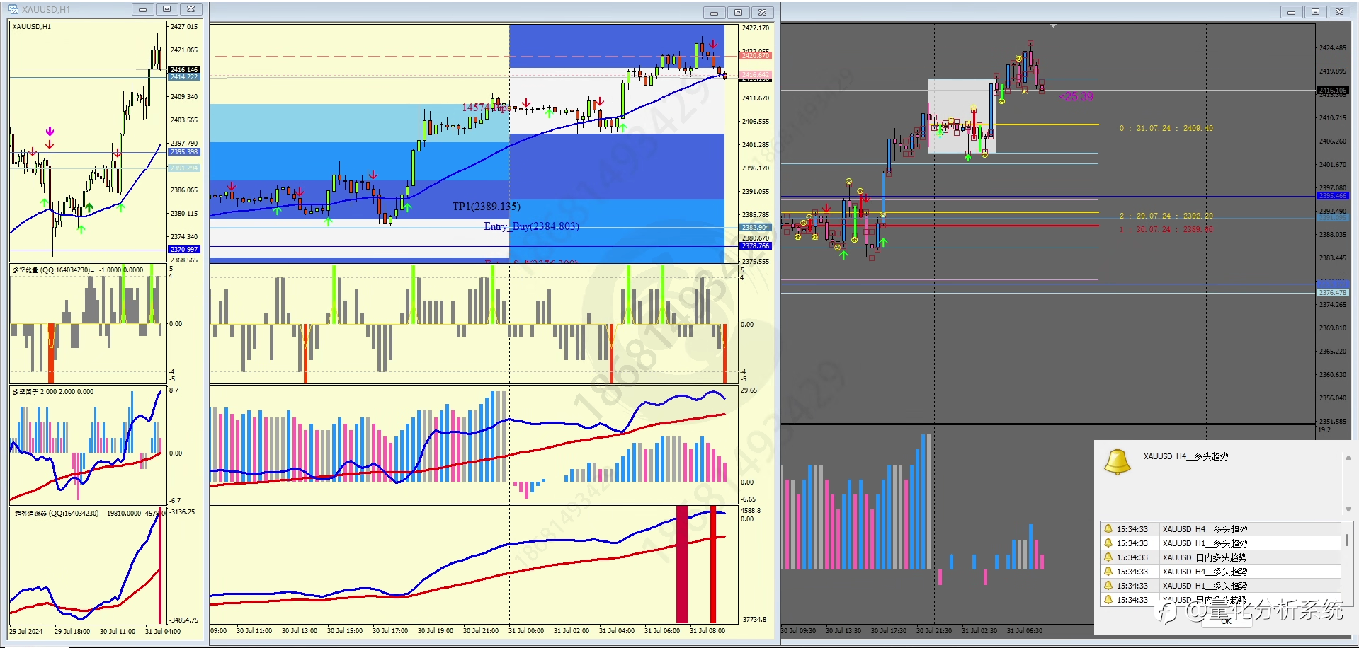 从量化分析系统来看,必要条件多空因子在上方排列,主要条件H1行情在均线上方运行,多空因子和H1方向在上方,顺势做多为主,高空为辅,从TP量化模型图来看,行情在白色震荡区域2437-2358内运行