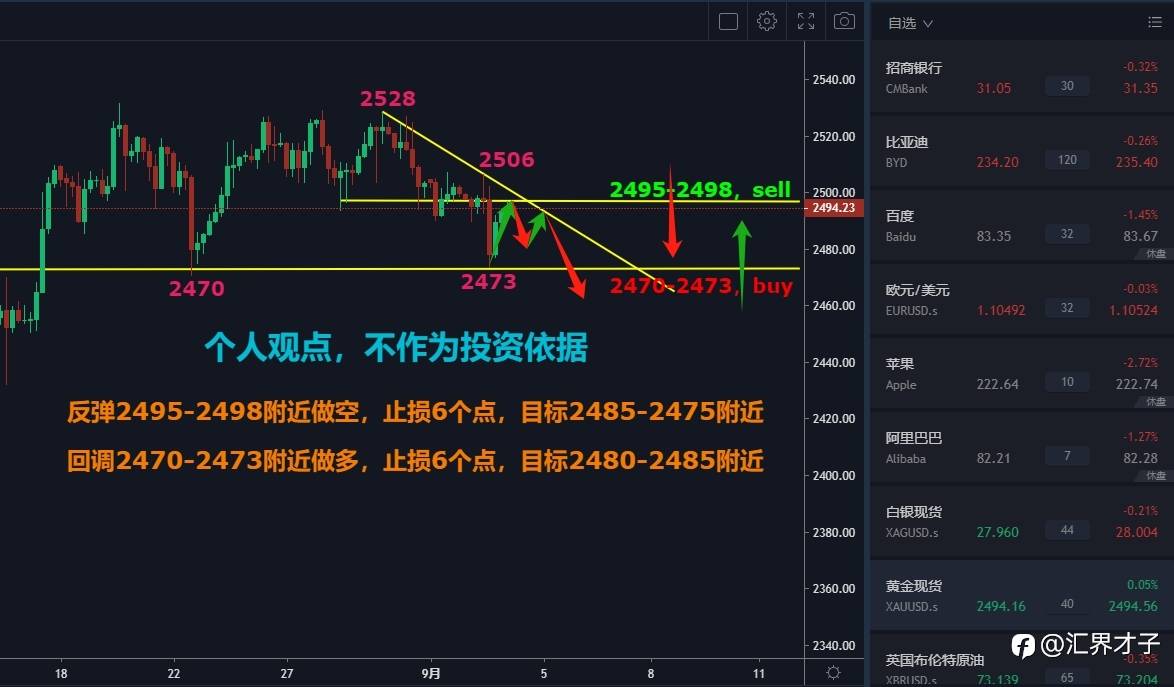 金价早盘小幅拉升又再一次来到2520一线,目前2520压力显而易见,金价拉升的力度微弱,并且早盘一小时线已经有收阴线,多头攻势没能延续,黄金势必要下跌。在此之前我已经明确强调,2520之下且临近2520将是我们布局空单的黄金点位,早盘的操作思路维持周末的观点不变,依托上方压力盘2520一线早盘我们在2516一线先空,综合来看,今日黄金短线操作思路上建议反弹做空为主,回调做多为辅,上方短期重点关注2518-2520一线阻力,下方短期重点关注2470-2485一线支撑。