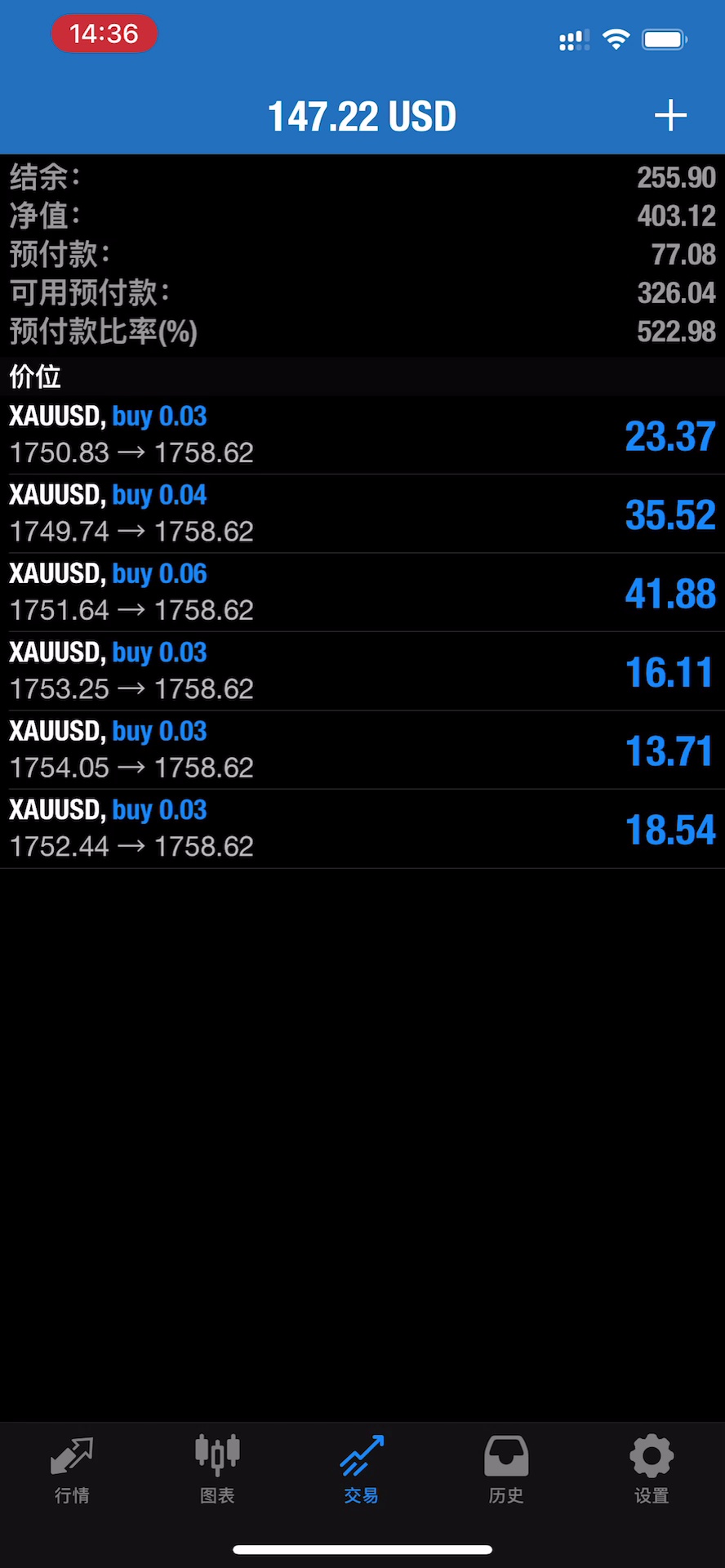 第四天:(趋势EA+人工监测)持单🀄️…… 风险提示:本文所述仅代表作者个人观点,不代表 Followme 的官方立场。Followme 不对内容的准确性、完整性或可靠性作出任何保证,对于基于该内容所采取的任何行为,不承担任何责任,除非另有书面明确说明。 赞赏作者 喜欢的话,赞赏支持一下