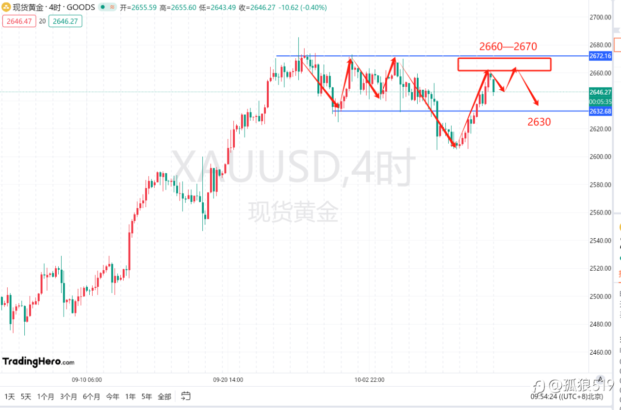 今日黄金策略:依然继续关注逢高布局空单的机会,上方阻力位2660—2670区间附近,下方目标位2630,2605附近 风险提示:本文所述仅代表作者个人观点,不代表 Followme 的官方立场。Followme 不对内容的准确性、完整性或可靠性作出任何保证,对于基于该内容所采取的任何行为,不承担任何责任,除非另有书面明确说明。