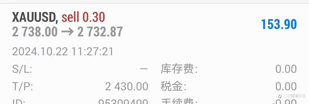 现价2735附近,早盘进场的2722多单到达最终目标,13个点到手,可以全部走了!反弹2740附近我们再做空! 风险提示:本文所述仅代表作者个人观点,不代表 Followme 的官方立场。Followme 不对内容的准确性、完整性或可靠性作出任何保证,对于基于该内容所采取的任何行为,不承担任何责任,除非另有书面明确说明。