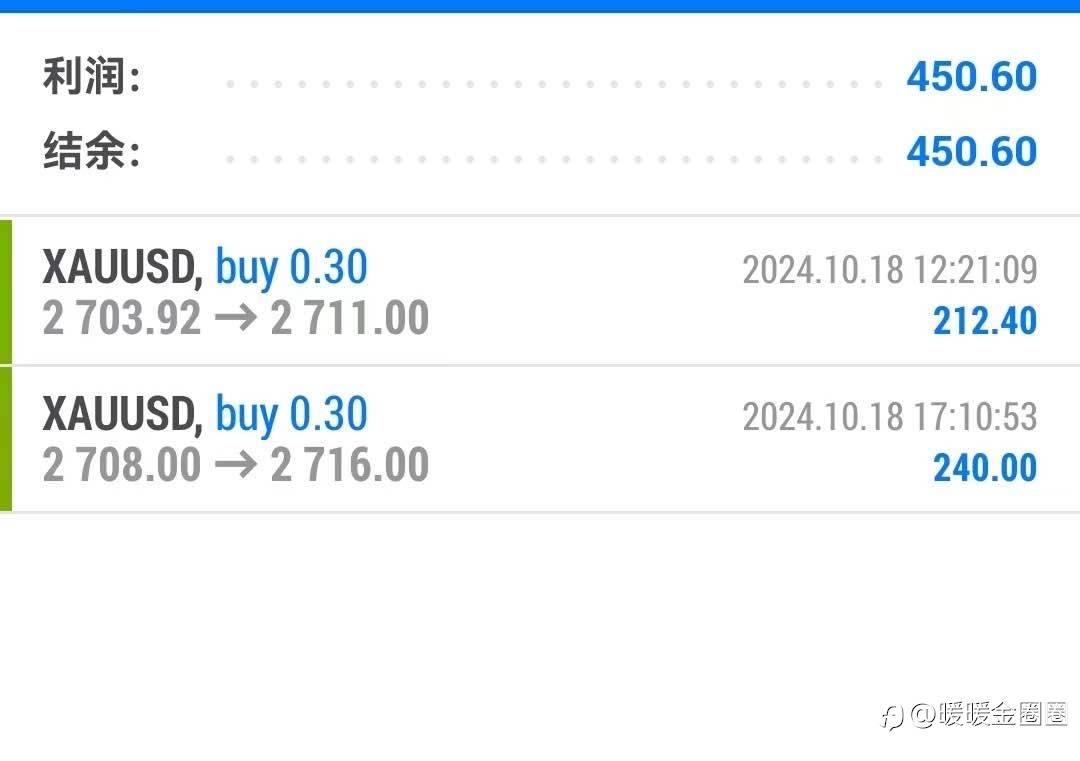 2738空单进场,今天多单已经拿下一单,2738是这两天下跌的支撑位,顶底转换,支撑变压力,先空一个下来! 风险提示:本文所述仅代表作者个人观点,不代表 Followme 的官方立场。Followme 不对内容的准确性、完整性或可靠性作出任何保证,对于基于该内容所采取的任何行为,不承担任何责任,除非另有书面明确说明。