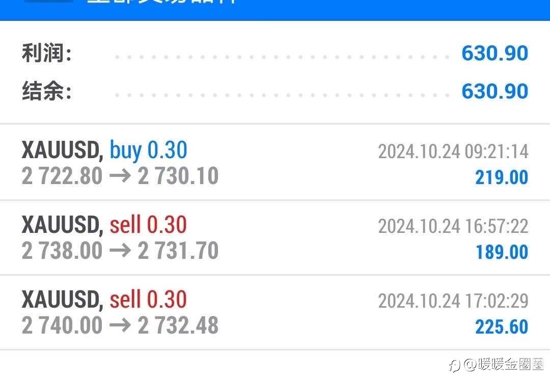周四手动总结:赚630美金 早盘2722做多,止盈2730,赚8个点 2738/40做空,止盈2732,赚14个点! 昨天黄金下跌后小幅度回调,最高至2743附近,晚上继续下行,今天若不能延续上涨下周将要破位至2680附近。 风险提示:本文所述仅代表作者个人观点,不代表 Followme 的官方立场。Followme 不对内容的准确性、完整性或可靠性作出任何保证,对于基于该内容所采取的任何行为,不承担任何责任,除非另有书面明确说明。