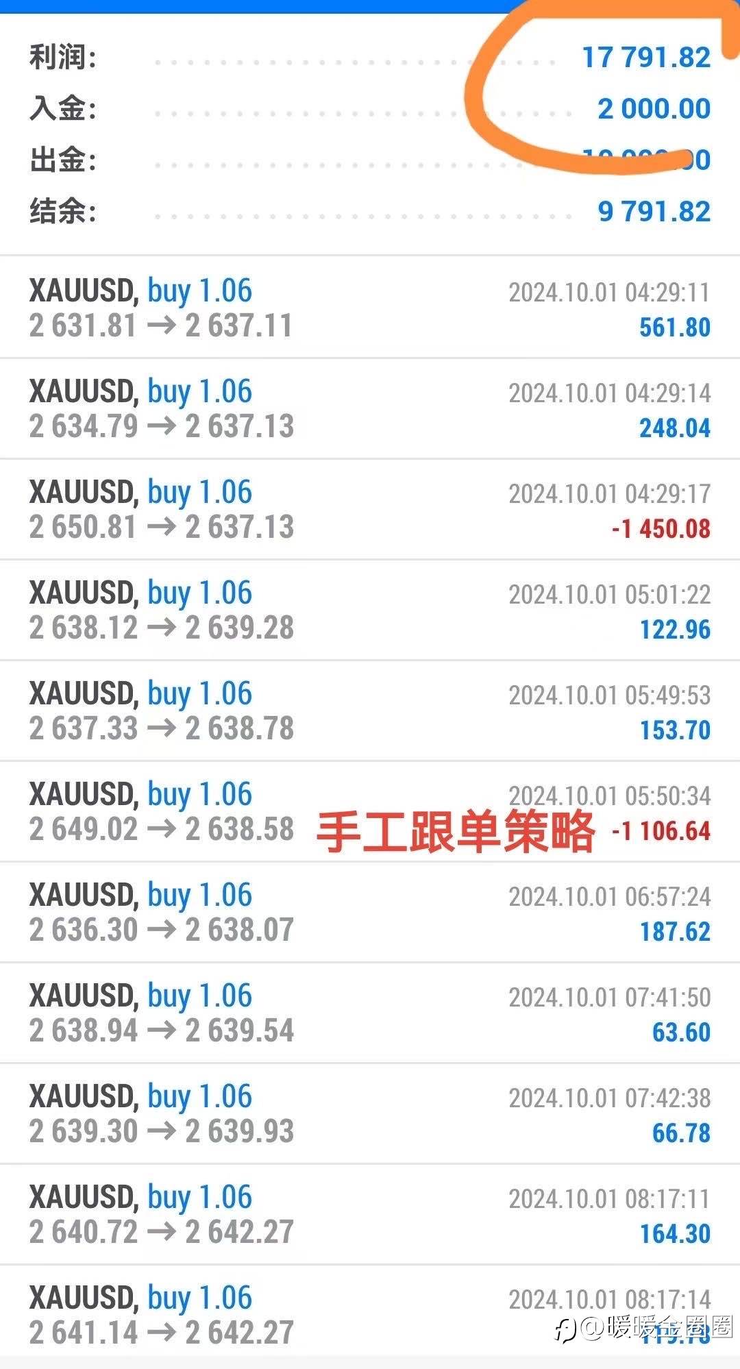 手工根丹策略今天小小收下一波,离场近1500美金,跟对策略止盈轻轻松松! 风险提示:本文所述仅代表作者个人观点,不代表 Followme 的官方立场。Followme 不对内容的准确性、完整性或可靠性作出任何保证,对于基于该内容所采取的任何行为,不承担任何责任,除非另有书面明确说明。