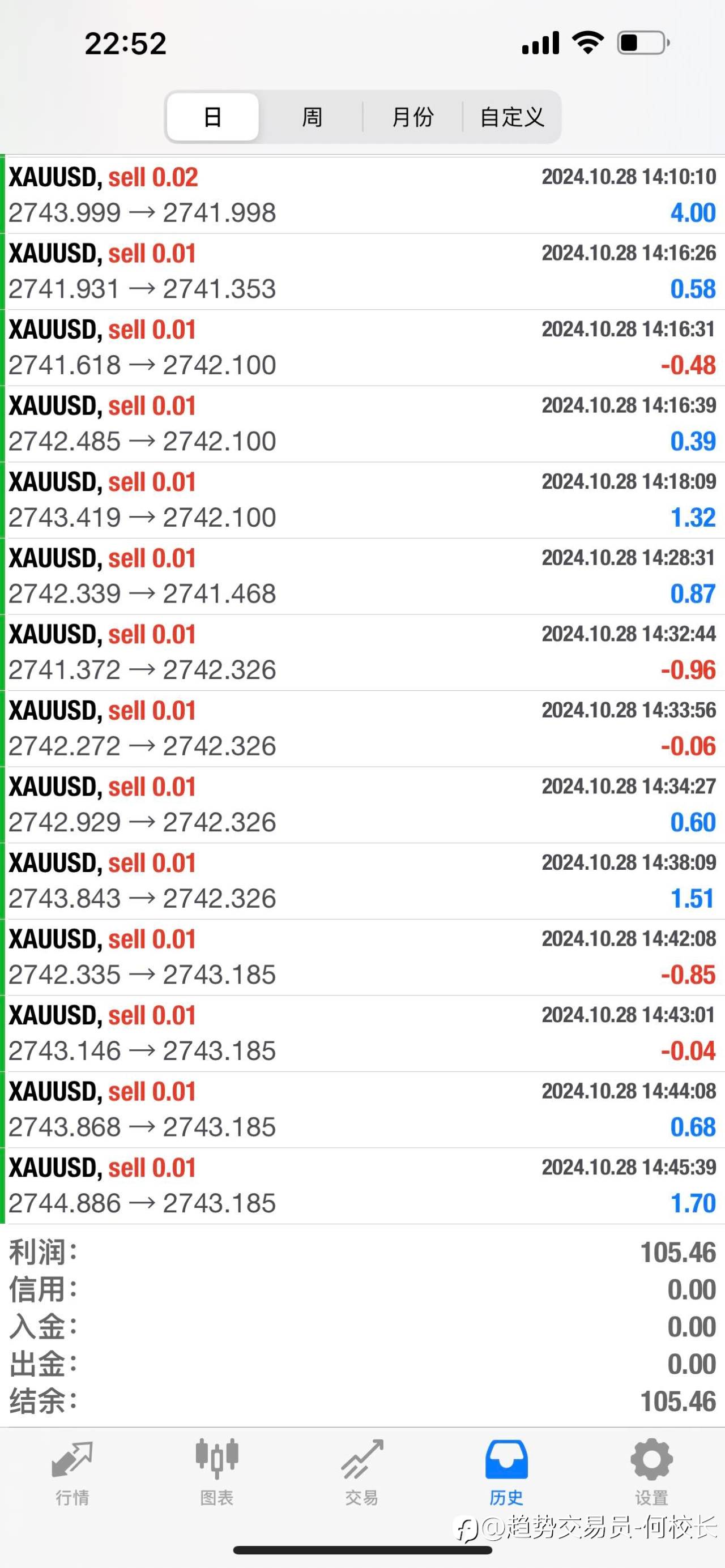 #XAU/USD# 今晚停止了。明天非农休息一天 风险提示:本文所述仅代表作者个人观点,不代表 Followme 的官方立场。Followme 不对内容的准确性、完整性或可靠性作出任何保证,对于基于该内容所采取的任何行为,不承担任何责任,除非另有书面明确说明。