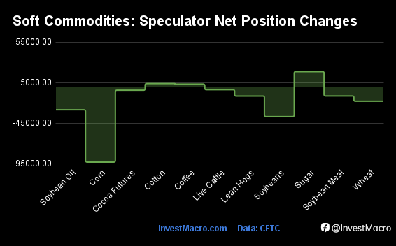 Leading the gains for the metals was Platinum (4,739 contracts) with Silver (4,077 contracts), Gold (3,145 contracts) and Palladium (650 contracts) also showing positive weeks.