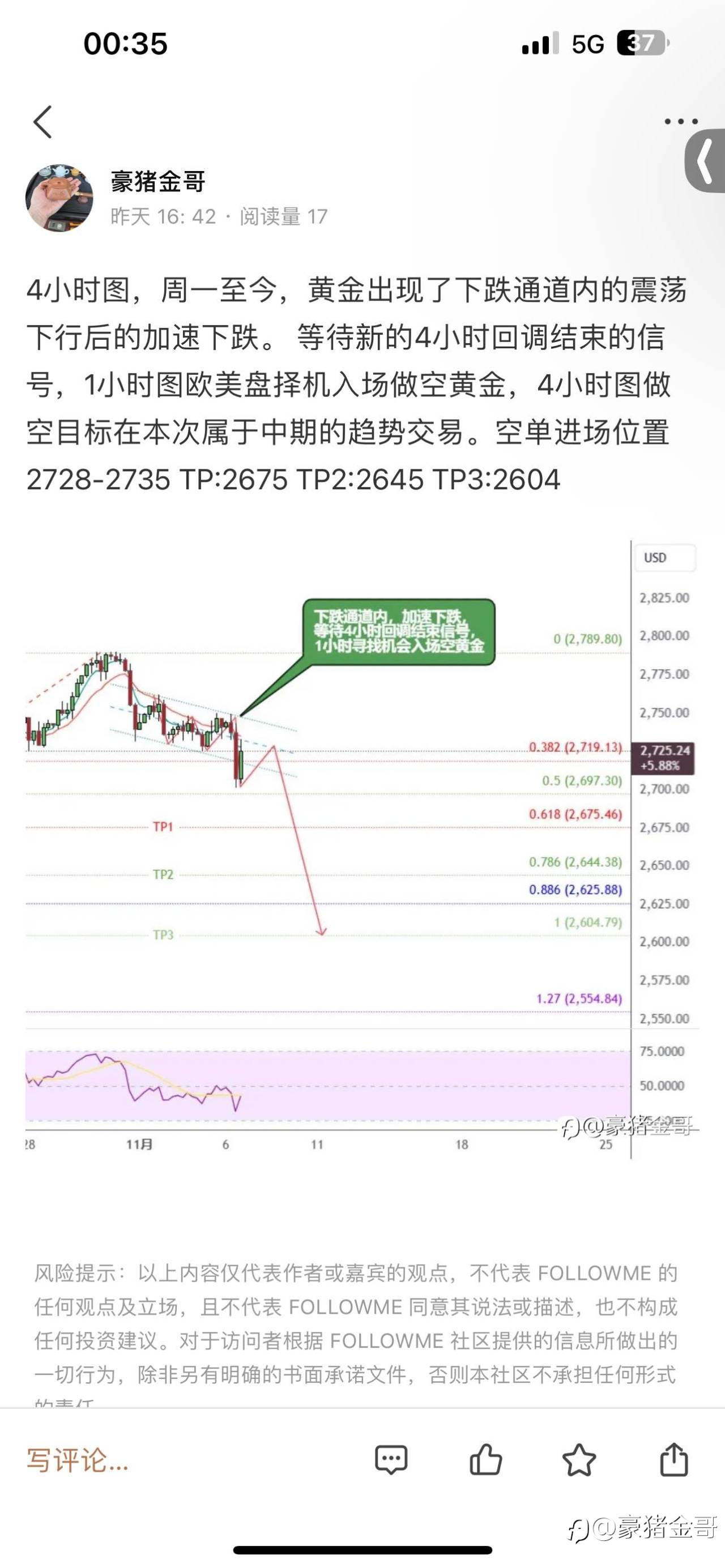黄金今日周五:美联储降息25个基点,符合市场预期,在接下来总统上任间隙,美联储不会有大动作,今天金哥不计划另外开仓,本人账户实时在线更新状态,顶不住浮亏就顶不住接下来的浮盈,这一次下跌趋势迎来首次反弹,依然只是虚破重压力,方向掌握在思路里,节奏掌握在脑海里,中线2604目标不变,让金哥看看有多少位朋友能够一起吃上一波下跌趋势利润