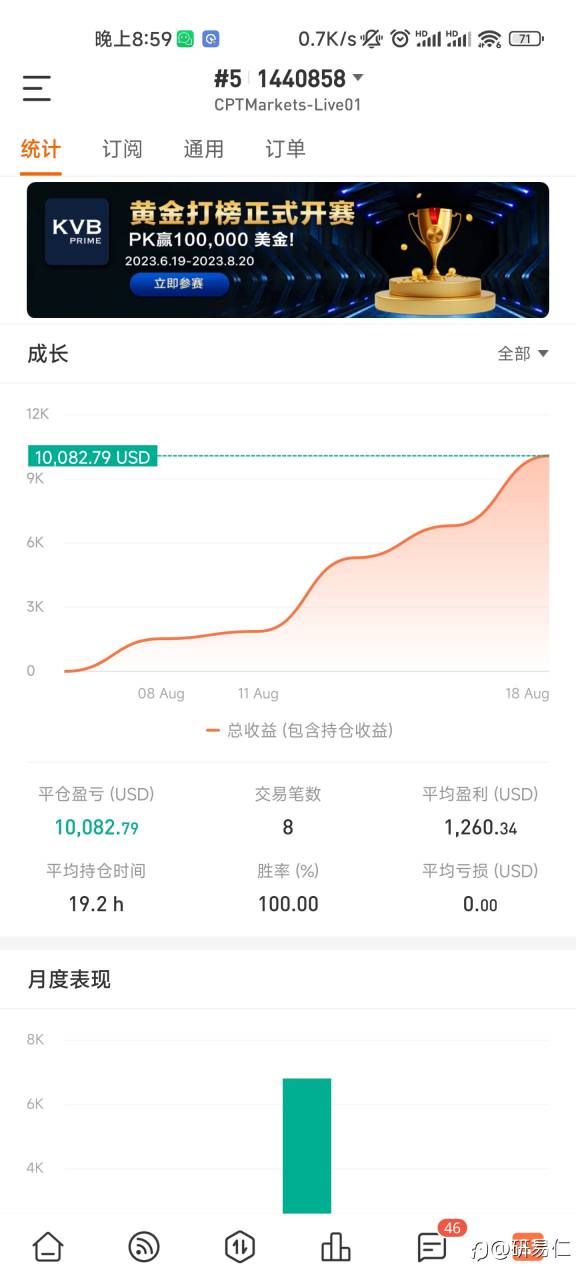 #新晋信号提供者#我来了,请大家关注我的#6交易员账户。穿越人海遇见你,交易从此不孤单。 账户 #6 1454940 经纪商 CPTMarketsPtyLtd 净值 27,110.00 USD 历史收益 4,966.00 USD
