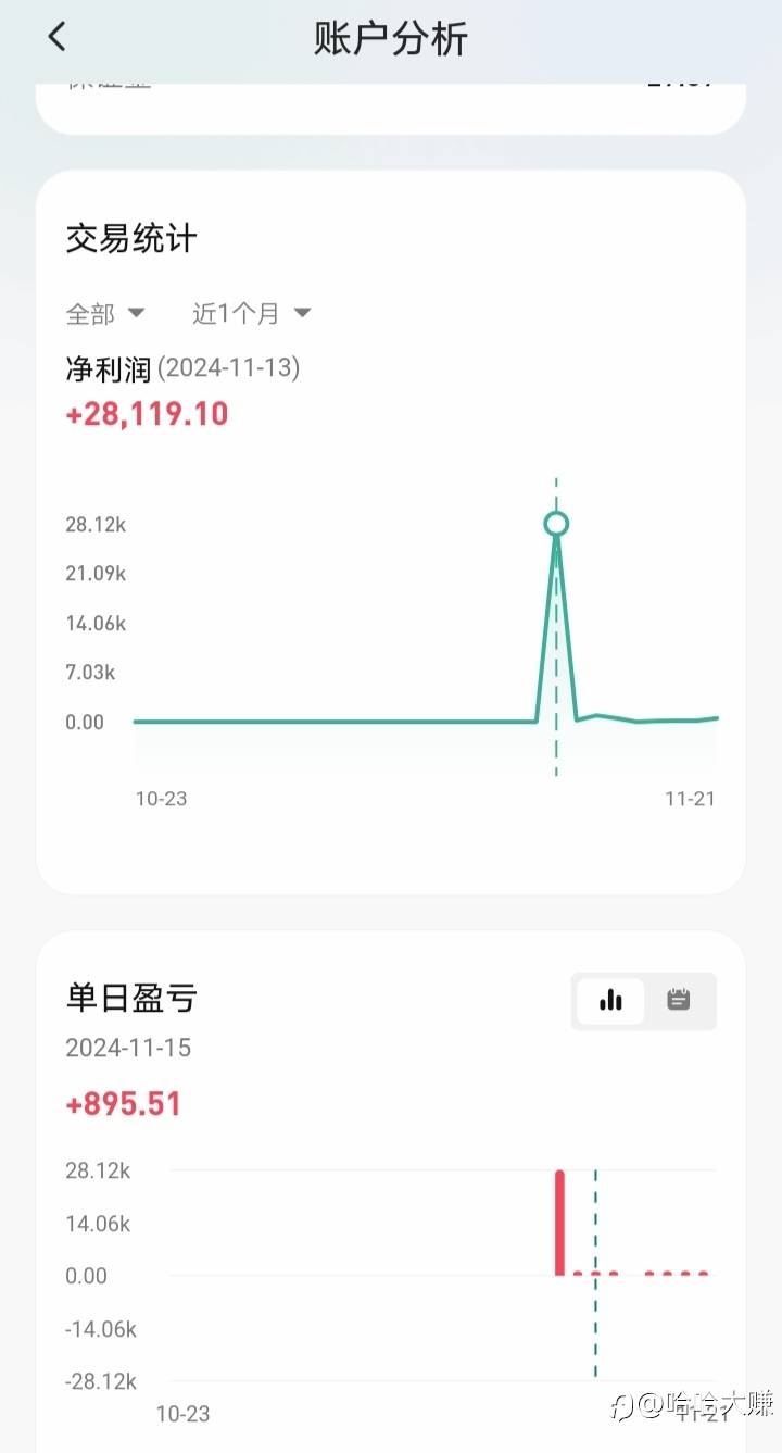 弦曜一下呵呵喝喝,最高单日收益28119元,平时日收益500左右,说话不负责任的啊,这是我最近真实情况。 风险提示:本文所述仅代表作者个人观点,不代表 Followme 的官方立场。Followme 不对内容的准确性、完整性或可靠性作出任何保证,对于基于该内容所采取的任何行为,不承担任何责任,除非另有书面明确说明。