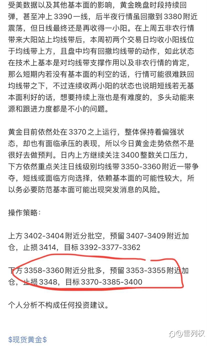 下方3348-3350附近分批多,预留3343-3345附近加仓,止损3338,目标3360-3375-3390