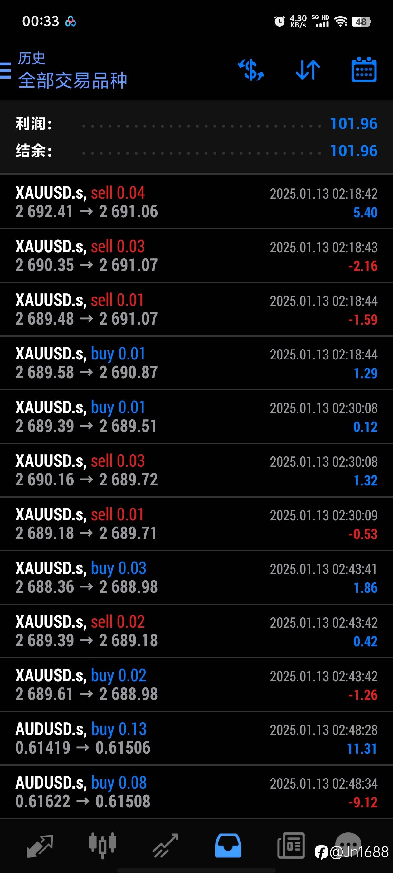 热爱交易,但切不可着相入魔,交易中最大的敌人就是自己,战胜自己的贪嗔痴慢疑,你也会是交易高手! 风险提示:本文所述仅代表作者个人观点,不代表 Followme 的官方立场。Followme 不对内容的准确性、完整性或可靠性作出任何保证,对于基于该内容所采取的任何行为,不承担任何责任,除非另有书面明确说明。