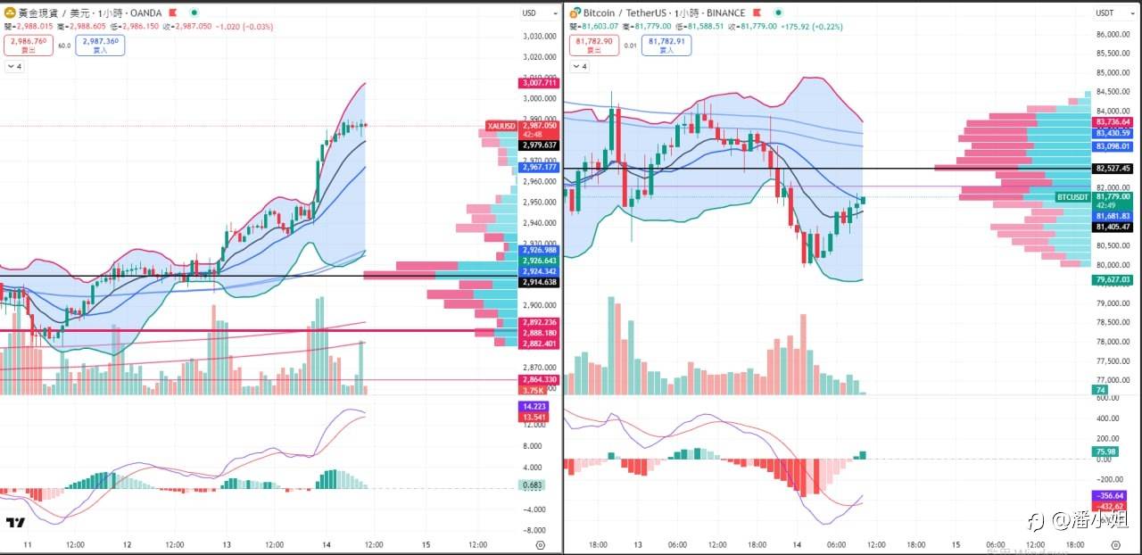 黄金可以空一把试试 目标看2979再来72 止损就2990 BTC能多 止损81100 目标看回到83000 可以看到黄金MACD有机会高位死叉 可以看一把回调 BTC同理 MACD水下金叉 同样向上看