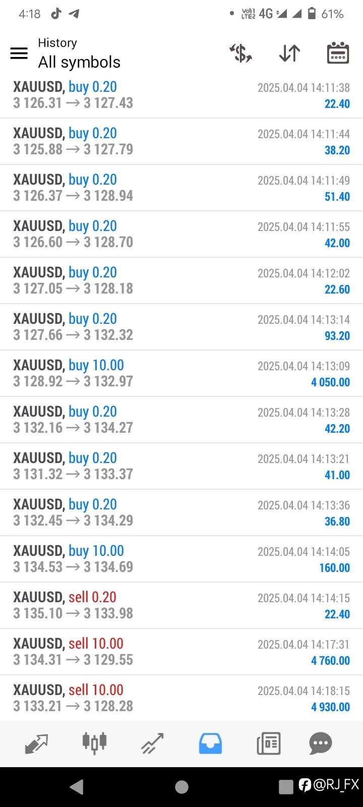 查看翻译 #XAU/USD#today my profit ✔️ 风险提示:本文所述仅代表作者个人观点,不代表 Followme 的官方立场。Followme 不对内容的准确性、完整性或可靠性作出任何保证,对于基于该内容所采取的任何行为,不承担任何责任,除非另有书面明确说明。