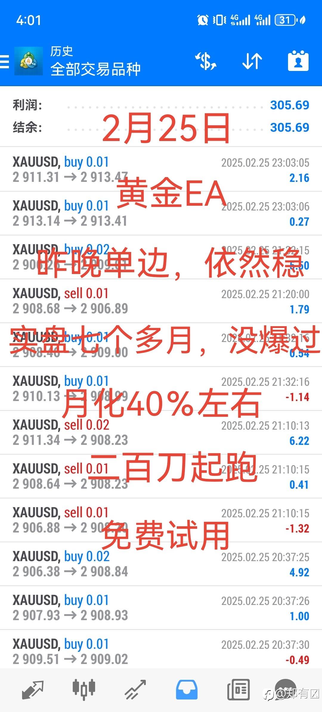 EA全自动,这两天一直在顺势做多👍👍👍 风险提示:本文所述仅代表作者个人观点,不代表 Followme 的官方立场。Followme 不对内容的准确性、完整性或可靠性作出任何保证,对于基于该内容所采取的任何行为,不承担任何责任,除非另有书面明确说明。 赞赏作者 喜欢的话,赞赏支持一下