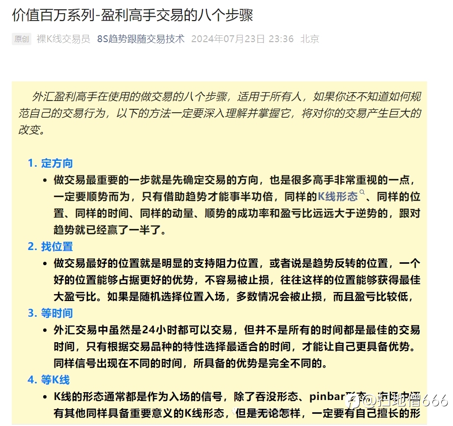 看到一篇不错的文章,关于做交易的执行步骤,做单思路,把整篇内容转发过来了,对很多交易者来说应该是有很大帮助的。当你有了交易系统之后,唯一需要打磨的就是执行力。