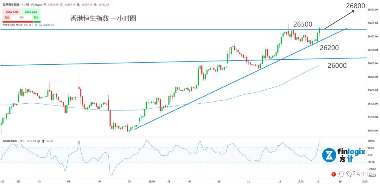 技术面:100均线向下,空头动能强劲。现价处在前低点关键支撑存在突破可能,入场时机可以配合CCI趋势指标跌破-100的空头信号。