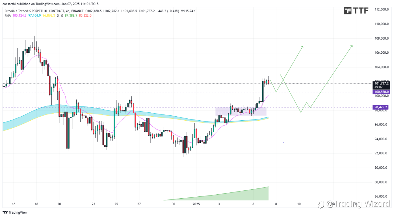 如果你在比特幣近期的價格波動中減持了手中的倉位,亦或是根本沒有入場錯過了比特幣的盈利機會,都不要擔心。之前提到過,1月6日,流動性會逐漸回歸,市場會給出明確的方向,而我們只需要重點關注比特幣的價格行為,特別是幾個重點位置附近的價格反應。