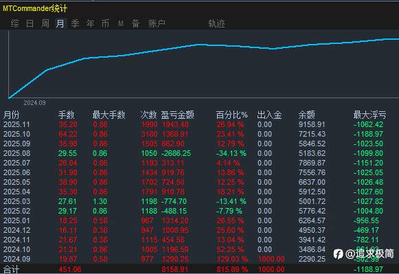 鱼鹰EA 2.0 根据内置先进算法自动交易,进出场方式比较灵活,截止目前2个多月盈利145.34%,带有严格止损 风险提示:本文所述仅代表作者个人观点,不代表 Followme 的官方立场。Followme 不对内容的准确性、完整性或可靠性作出任何保证,对于基于该内容所采取的任何行为,不承担任何责任,除非另有书面明确说明。