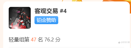 打卡第2天:名次14->6。前面几位选手让我感到害怕。太强了。 风险提示:本文所述仅代表作者个人观点,不代表 Followme 的官方立场。Followme 不对内容的准确性、完整性或可靠性作出任何保证,对于基于该内容所采取的任何行为,不承担任何责任,除非另有书面明确说明。