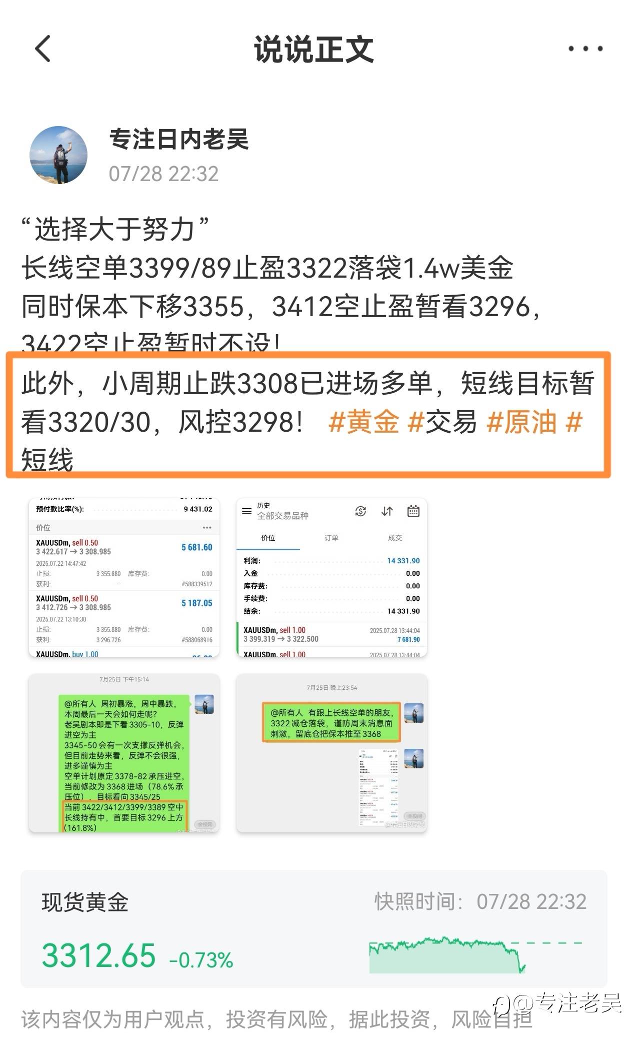 周一3399/89空减仓止盈3322,共计拿下140$行情,进账1.4w刀!