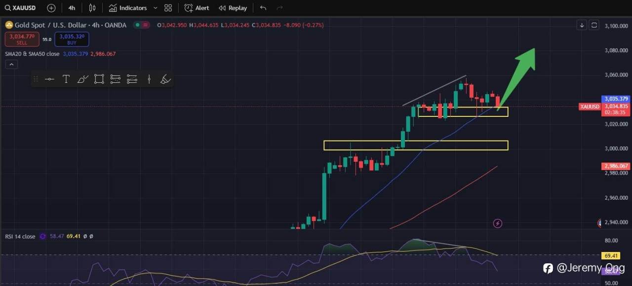 我们在上期指出黄金短期可能回调,但整体涨势仍未结束,建议回调做多。当前金价位于 $3,300 - $3,500 区间震荡整理,趋势维持偏多格局。