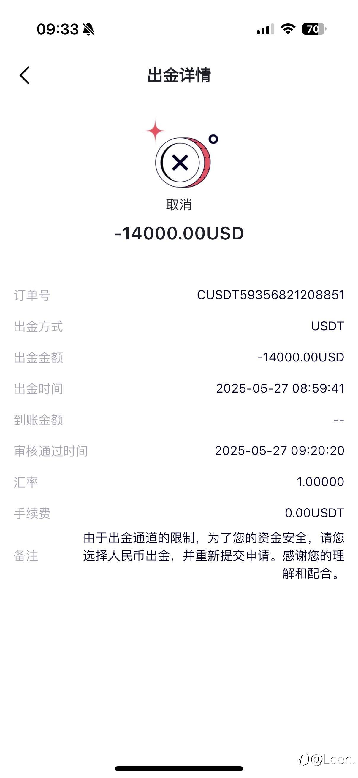 出金问题 出来解决一下。客服不回。解决不了 风险提示:本文所述仅代表作者个人观点,不代表 Followme 的官方立场。Followme 不对内容的准确性、完整性或可靠性作出任何保证,对于基于该内容所采取的任何行为,不承担任何责任,除非另有书面明确说明。