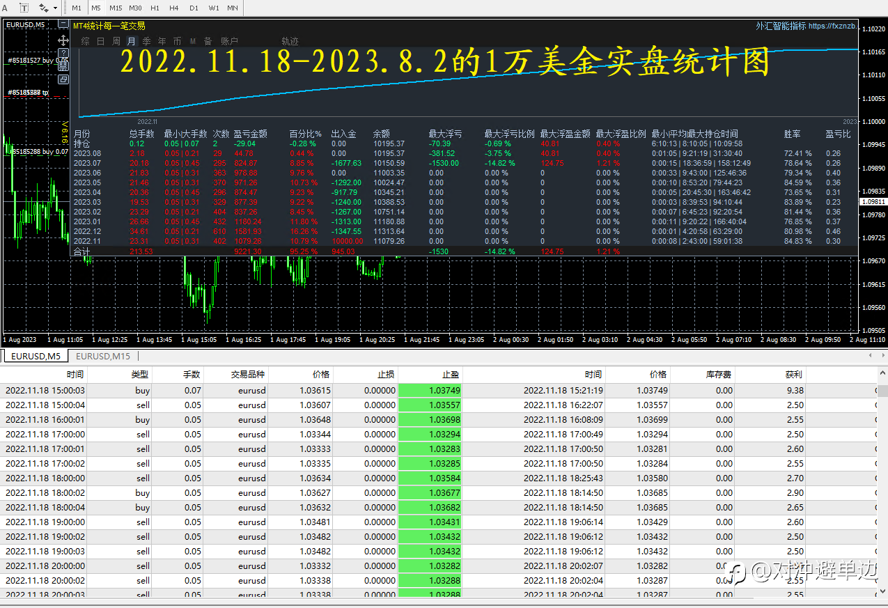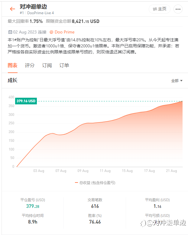我的#1账户由于信号账户资源紧缺,只能使用老账户,以前的老策略不要关心了。2025年5月22号起启用“一次1单,一天1单”的黄金新策略。日利率维持1%,最大浮亏率15%;胜率100%,最大回撤0。激进者100u1倍跟单、保守者200u1倍跟单。已启用保障功能,承诺严格按各自实际资金比例跟单造成跟单亏损的,则双倍退还其订阅费。