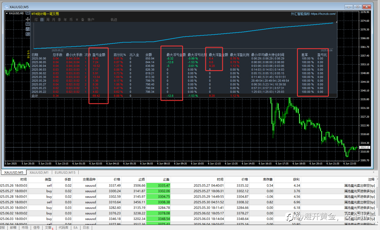 本#5号账户为“每天一次一单、每单1%利润率”策略。由于FM平台信号账户稀缺只能启用老账户,从25年5月22日起运行新策略。特别适用于小小散户投资100u开始。最大浮亏目前在10%以下。避免了黄金的妖魔,大单边的爆仓。稳健的100u0.2倍跟单,保守的200u0.2倍跟单。本策略已启动订阅保障,请按资金比例放心跟单。
