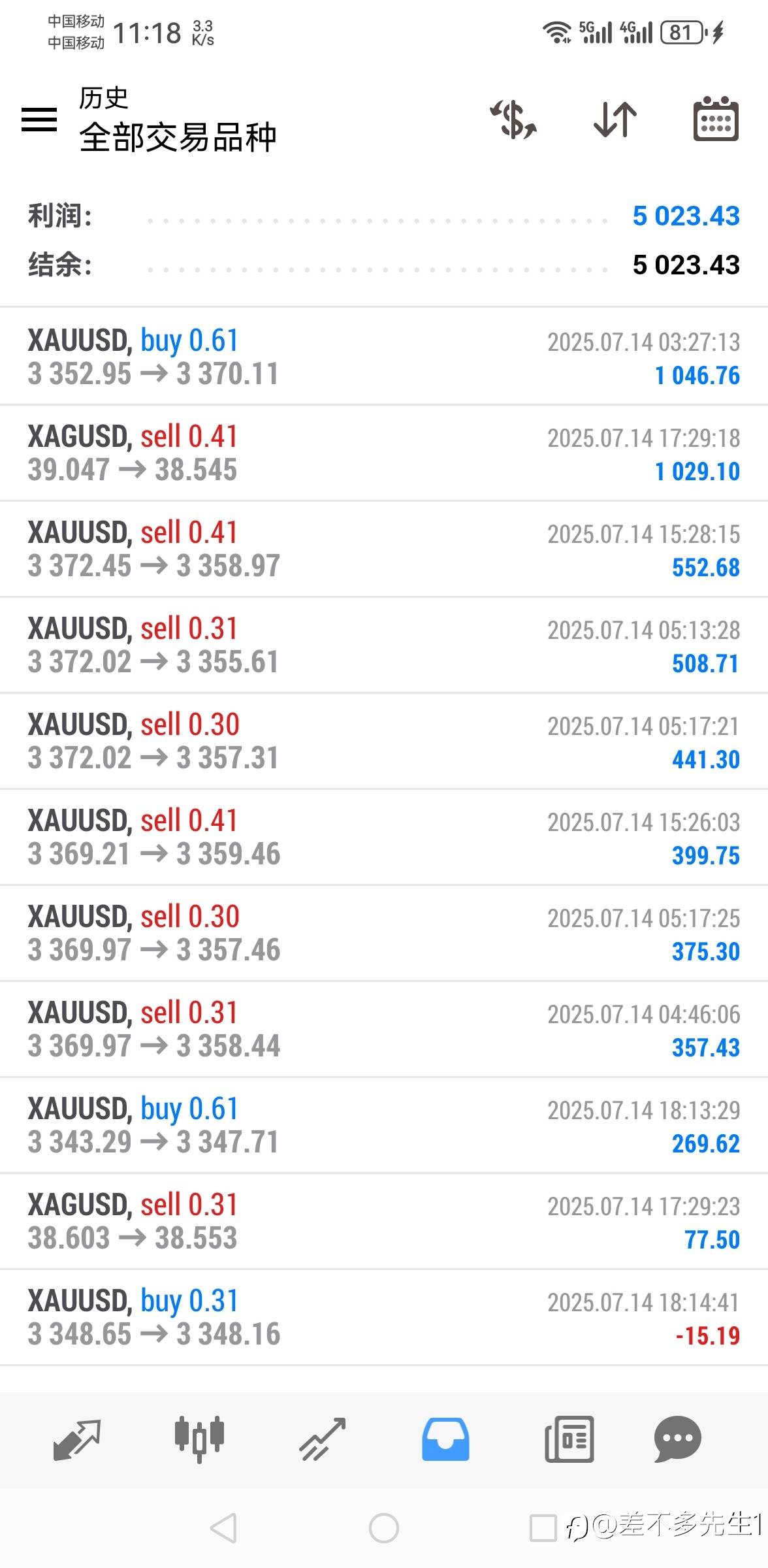 黄金早上给出3350的多单,现价已经来到3377附近。每天的多空点位都能相对精准的把握住。每次的进场点位都是符合交易体系才进场的,长期关注验证即可! 风险提示:本文所述仅代表作者个人观点,不代表 Followme 的官方立场。Followme 不对内容的准确性、完整性或可靠性作出任何保证,对于基于该内容所采取的任何行为,不承担任何责任,除非另有书面明确说明。