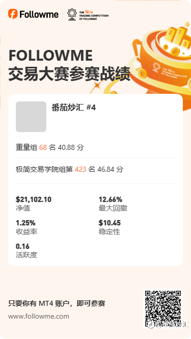 今天排名第57名,比昨天上升了9名,加油! 风险提示:本文所述仅代表作者个人观点,不代表 Followme 的官方立场。Followme 不对内容的准确性、完整性或可靠性作出任何保证,对于基于该内容所采取的任何行为,不承担任何责任,除非另有书面明确说明。