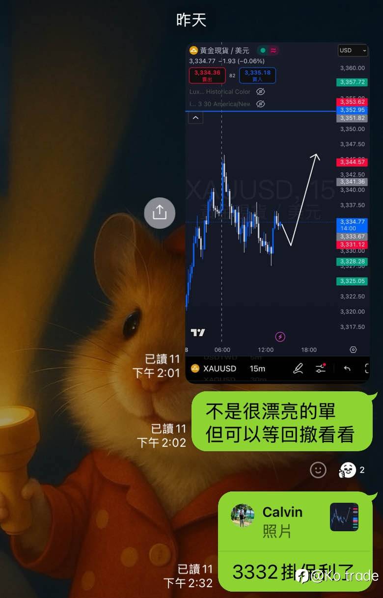 查看翻译 哈哈昨天黃金持續下壓 沒有回撤機會就不進場 今天黃金有撿到多單🥳 鎊日精準噴 已编辑 08 Jul 2025, 18:58 风险提示:本文所述仅代表作者个人观点,不代表 Followme 的官方立场。Followme 不对内容的准确性、完整性或可靠性作出任何保证,对于基于该内容所采取的任何行为,不承担任何责任,除非另有书面明确说明。