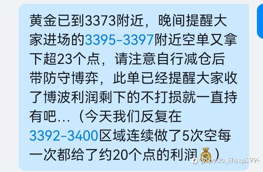 黄金现价3305附近昨日连续做空又是如期全部大赚,参与的3342-3340附近空,多次3336-3334附近空,晚间又3330附近加空,这波空单全部如期止盈3305附近!这波空头我们完美获利35+35+36+25个点! 风险提示:本文所述仅代表作者个人观点,不代表 Followme 的官方立场。Followme 不对内容的准确性、完整性或可靠性作出任何保证,对于基于该内容所采取的任何行为,不承担任何责任,除非另有书面明确说明。