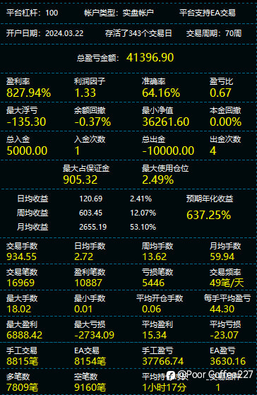查看翻译 黄金手动-年话1000%,带止损,仓位可调整 风险提示:本文所述仅代表作者个人观点,不代表 Followme 的官方立场。Followme 不对内容的准确性、完整性或可靠性作出任何保证,对于基于该内容所采取的任何行为,不承担任何责任,除非另有书面明确说明。