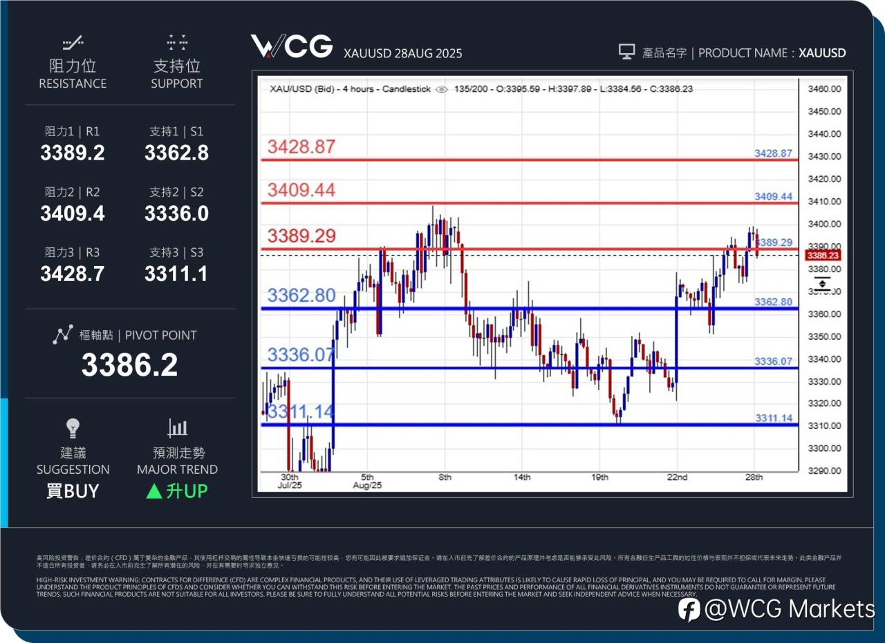 WCG Markets2025年08月18日黄金市况分析 风险提示:本文所述仅代表作者个人观点,不代表 Followme 的官方立场。Followme 不对内容的准确性、完整性或可靠性作出任何保证,对于基于该内容所采取的任何行为,不承担任何责任,除非另有书面明确说明。