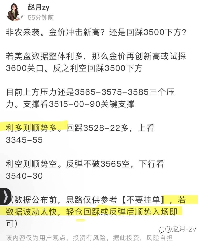 #XAU/USD# 非农数据利空,当前3553北上已经入场,行情波动太快,回落3568浮盈加仓,顺势多单目标3590