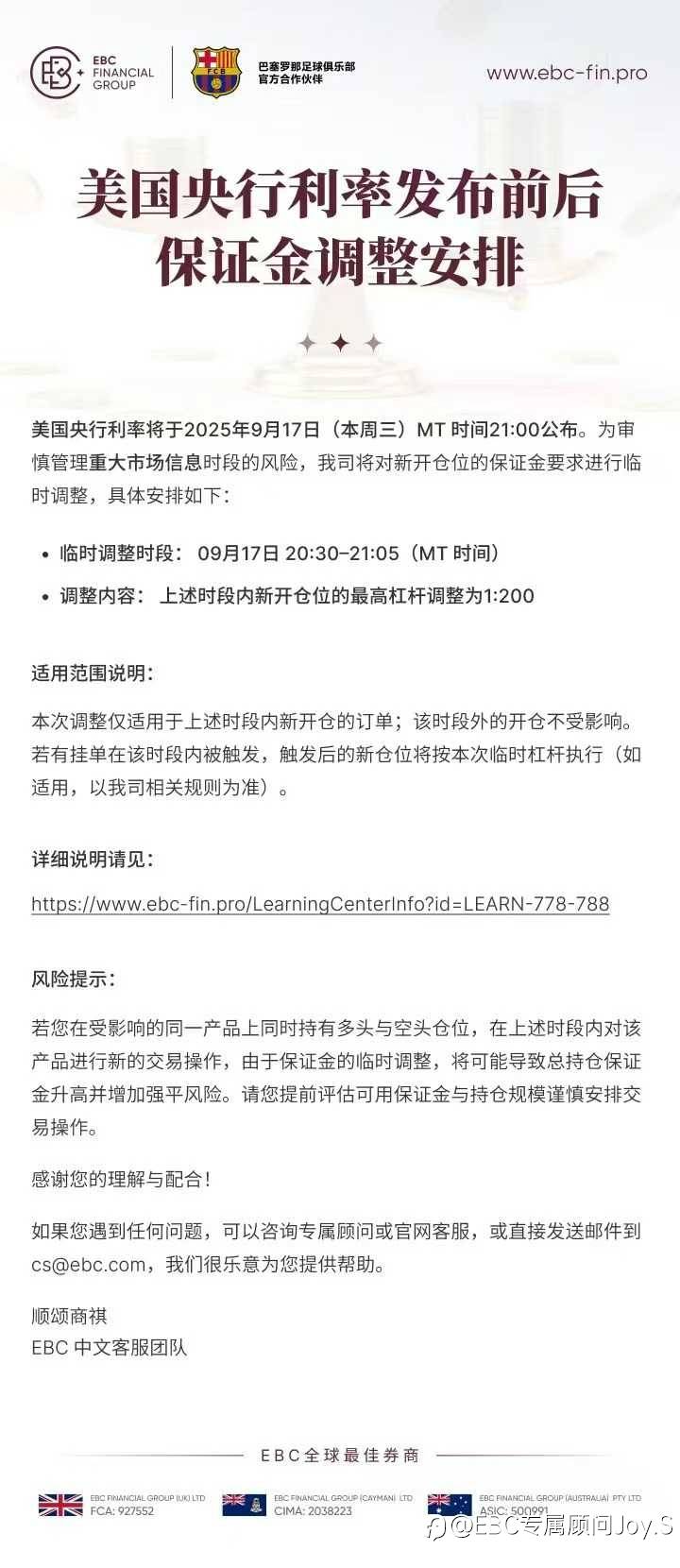 今晚美国利率决议 敬请留意期间杠杆变化 风险提示:本文所述仅代表作者个人观点,不代表 Followme 的官方立场。Followme 不对内容的准确性、完整性或可靠性作出任何保证,对于基于该内容所采取的任何行为,不承担任何责任,除非另有书面明确说明。
