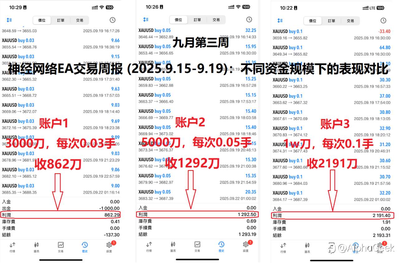 神经网络ea交易周报(9.15-9.19),欢迎亲们查阅 所有数据均来自实盘交易记录 支持账户观摩和交易记录查验 风险提示:本文所述仅代表作者个人观点,不代表 Followme 的官方立场。Followme 不对内容的准确性、完整性或可靠性作出任何保证,对于基于该内容所采取的任何行为,不承担任何责任,除非另有书面明确说明。