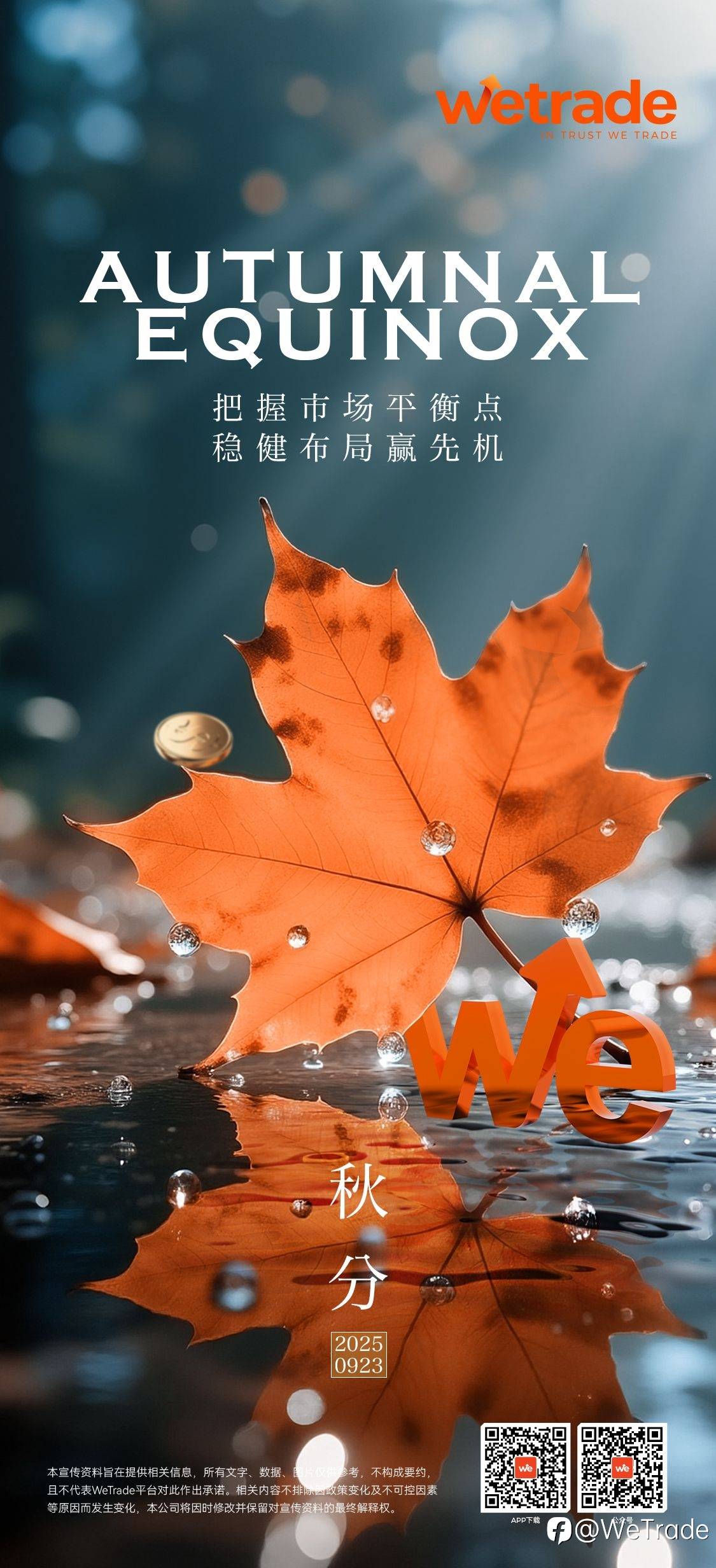 🍂 秋分·市场平衡 🍂 在昼夜均分的时刻,抓住市场的平衡点 稳健布局,赢取先机 与 WeTrade 一起,把握趋势,交易更有力量 风险提示:本文所述仅代表作者个人观点,不代表 Followme 的官方立场。Followme 不对内容的准确性、完整性或可靠性作出任何保证,对于基于该内容所采取的任何行为,不承担任何责任,除非另有书面明确说明。