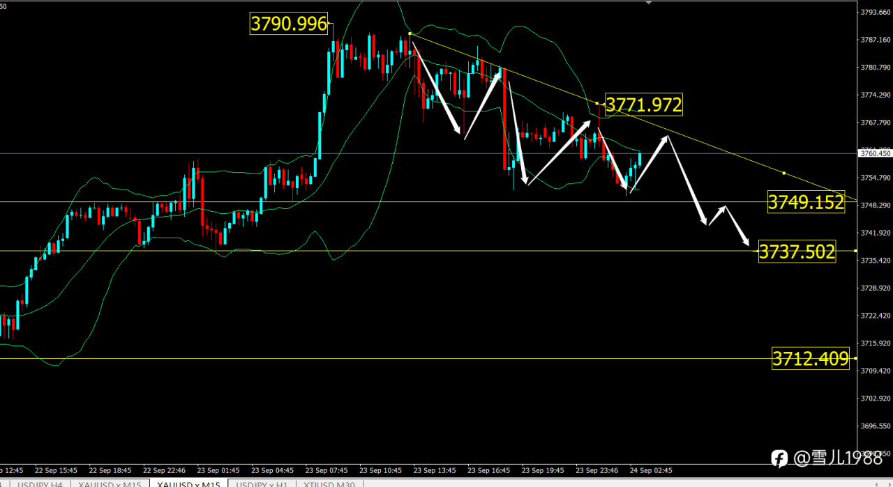早间行情延续凌晨下跌走势,破新低后迅速反弹,今日主要震荡修正为主,上方分水岭在3772附近,未突破此压力前可保持逢高短空,下方关注3750附近的支撑,整体看涨节奏不变,等待低位布局多头 压力:3760/3772 支撑:3750/3737 风险提示:本文所述仅代表作者个人观点,不代表 Followme 的官方立场。Followme 不对内容的准确性、完整性或可靠性作出任何保证,对于基于该内容所采取的任何行为,不承担任何责任,除非另有书面明确说明。