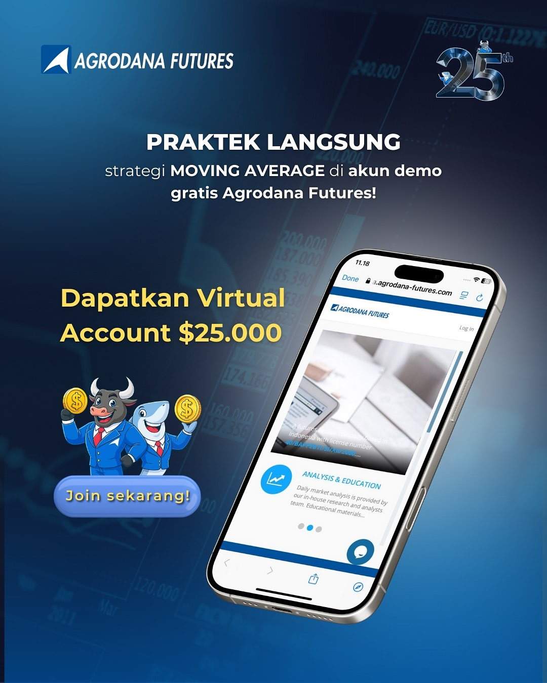 Sekarang waktunya kamu praktek strategi MOVING AVERAGE langsung di akun demo Agrodana Futures dan dapatkan saldo virtual gratis $25,000!