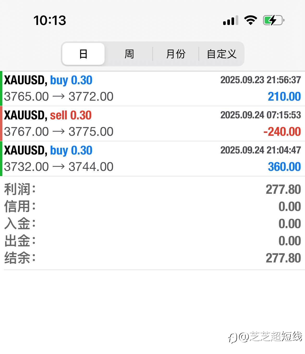 黄金每天都开启暴涨暴跌模式,昨日最高冲到3790附近,手动三胜一,总拿下277刀 风险提示:本文所述仅代表作者个人观点,不代表 Followme 的官方立场。Followme 不对内容的准确性、完整性或可靠性作出任何保证,对于基于该内容所采取的任何行为,不承担任何责任,除非另有书面明确说明。