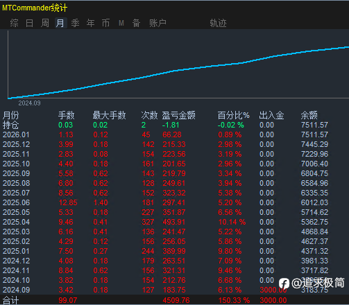 天秤座EA 2.0 是一款单货币对冲策略,有效应对近年单边行情,截止目前1年多总盈利126.17%,月均10%左右 风险提示:本文所述仅代表作者个人观点,不代表 Followme 的官方立场。Followme 不对内容的准确性、完整性或可靠性作出任何保证,对于基于该内容所采取的任何行为,不承担任何责任,除非另有书面明确说明。
