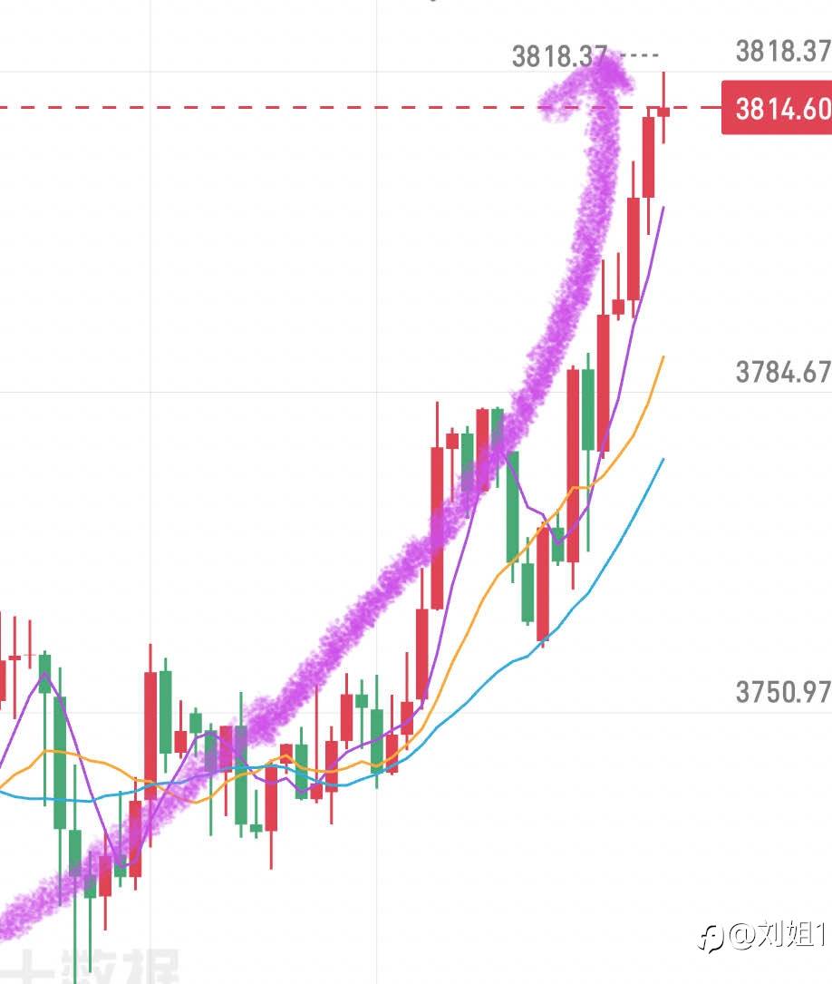 加上周一3772顺势买涨同步止赢3800继续拿下28💲,3805附近空已在3812撤退。 回落3804-3796继续多,目标3812-25-36,刘姐波段3726/28多继续上看3850-70。