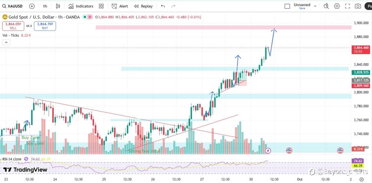 Gold continues to demonstrate solid bullish control on higher time frames. Holding above support opens the path toward 3875 and possibly 3890.