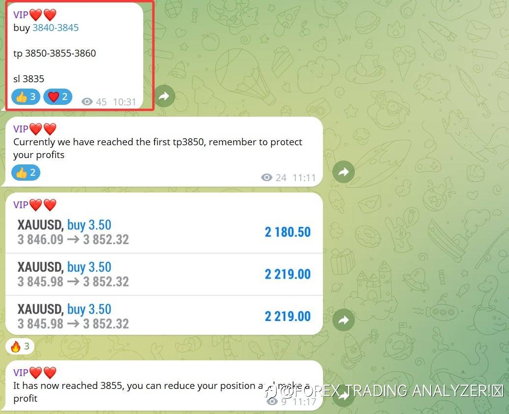 In the VIP channel, we recommend buying in the 3840-3845 range. The lowest price was around 3843, and the current high was around 3855, with a current profit of 100 pips.