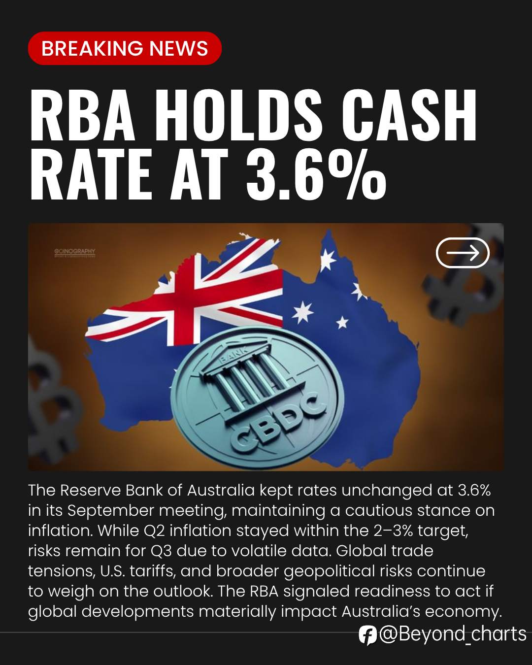 The Reserve Bank of Australia held its cash rate at 3.6%, aligning with market expectations.