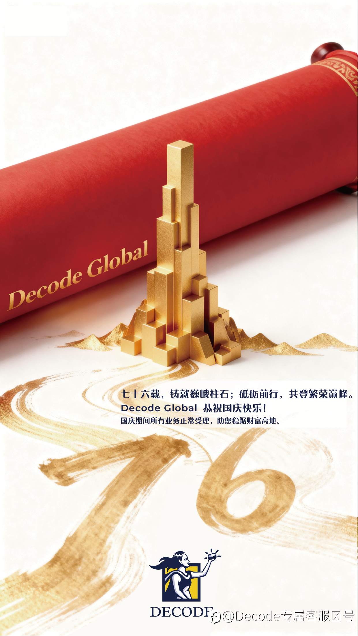 Decode Global —— —— 山河岁月,峥嵘鼎新 铸就巍峨柱石76年 同愿以21载金融之力,与您共绘东方传奇! Choose Better,Choose Decode ! 风险提示:本文所述仅代表作者个人观点,不代表 Followme 的官方立场。Followme 不对内容的准确性、完整性或可靠性作出任何保证,对于基于该内容所采取的任何行为,不承担任何责任,除非另有书面明确说明。